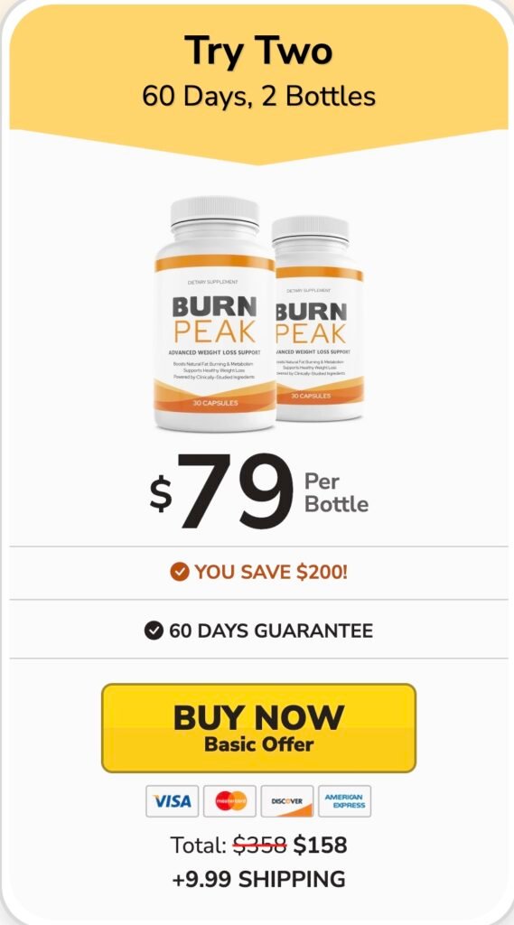 We’re so certain BurnPeak will give you remarkable results that we’re willing to shoulder all the risk for a full 60 days. From the moment your order arrives, start taking BurnPeak daily and pay close attention to how you feel. Within just a few days, you may notice renewed energy, reduced bloating, and a sense of lightness you haven’t felt in years. Continue for a few weeks or months, and you could witness a dramatic shift in your body—stubborn fat melting away, your waistline shrinking, and a true transformation in your confidence and well-being.